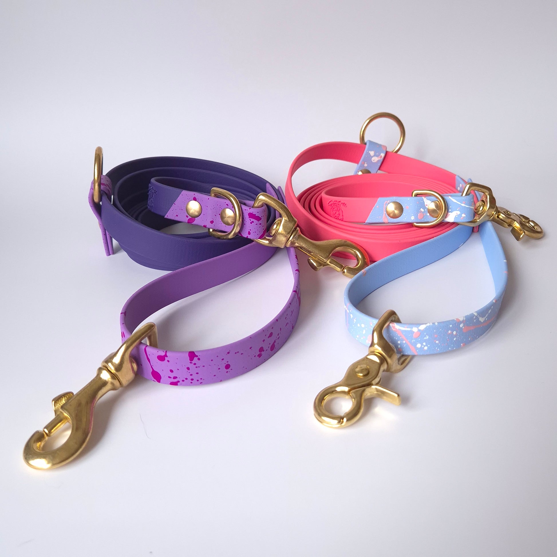 Fabriquée à la main en France avec du BioThane® et des boucles en laiton, cette laisse est imperméable, hypoallergénique et résistante pour des années de plaisir.
