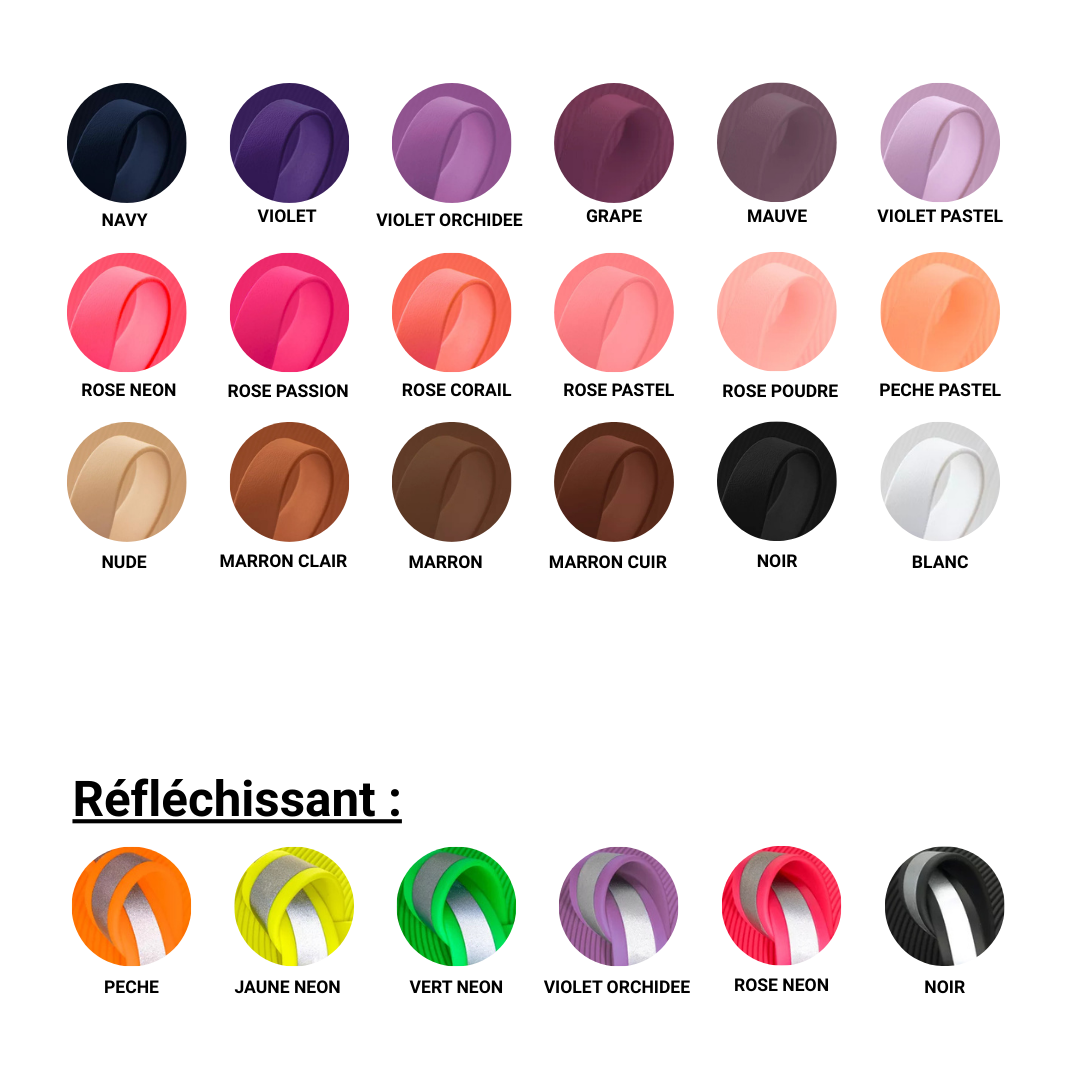 De nombreux coloris sont disponibles pour créer le harnais de vos rêves. Vous avez également la possibilité d'ajouter des options pour qu'il vous corresponde d'avantage !